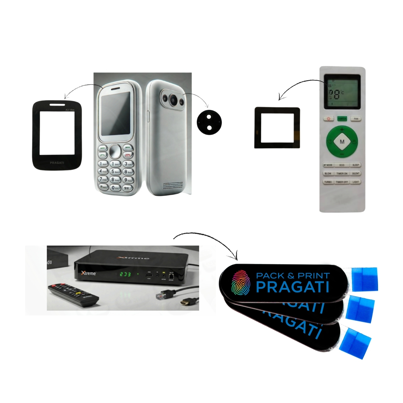 Options: Main Lens, Camera Lens, Deco Lens, IR Router Lens, Soundbox Lens, display lens for feature phones, routers, remote controls, touch panels and appliances.