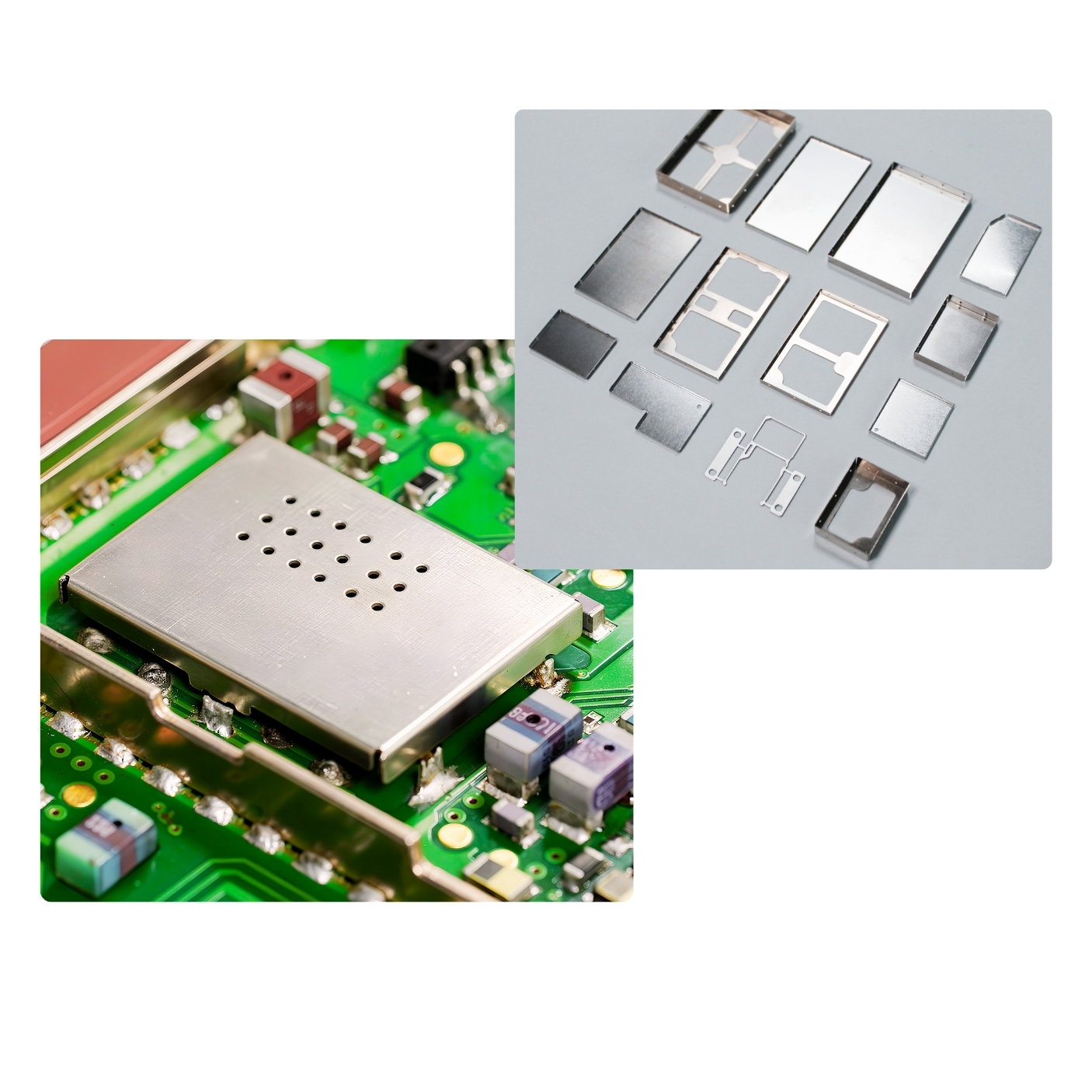 Precision-formed metal enclosures with customised dimensions and grounding points. EMI and RFI shielding. Ensures compliance, prevents signal degradation, and enhances reliability.