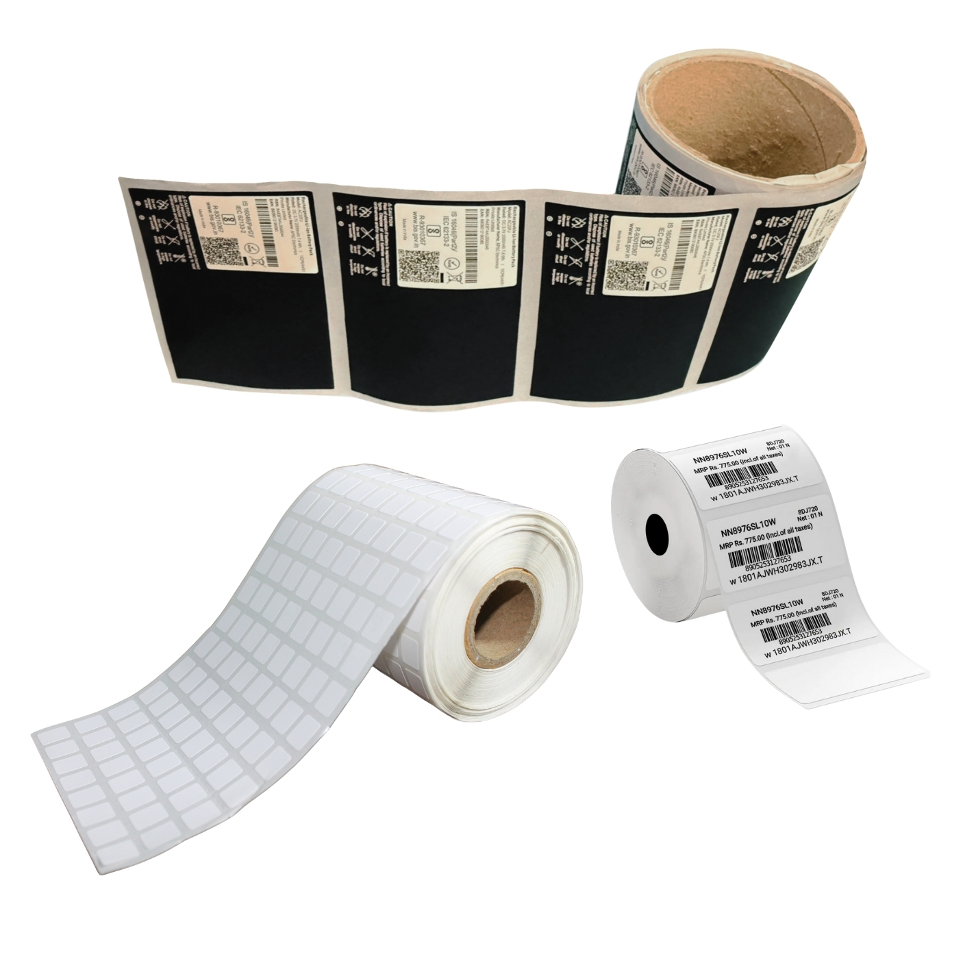 Options: Decorative, Polymide, Battery, Water Indicator, Barcode. Film, paper, specialty materials with gloss, matte, or textured finishes.